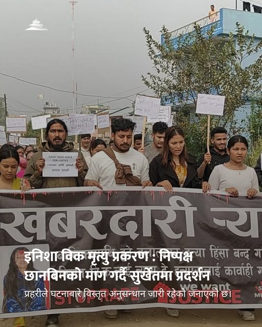 सुर्खेतको वीरेन्द्रनगर नगरपालिका–४ स्थित जनजागरण सामुदायिक वनमा मृत भेटिएकी १६ वर्षीया इनिसा विकको मृत्यु प्रकरणमा निष्पक्ष छानबिनको माग गर्दै पीडित पक्षधरहरूले आन्दोलन गरेका छन्।