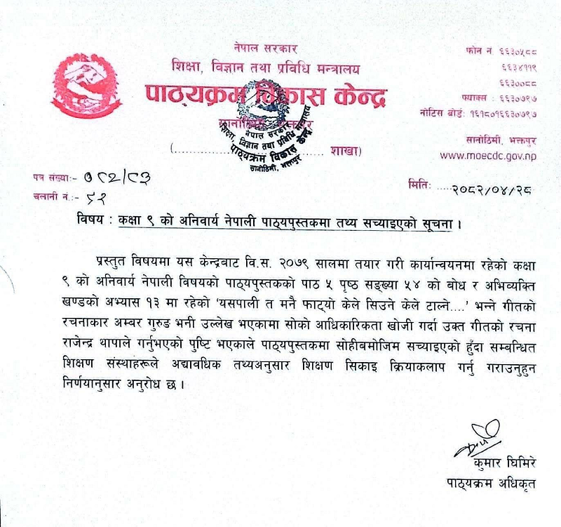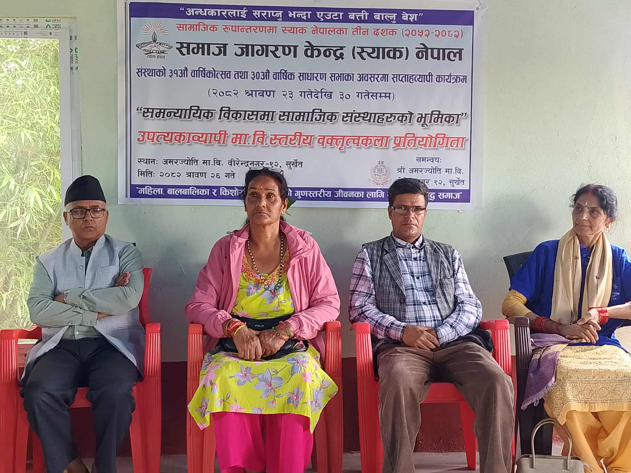 सुर्खेत, ९ असाेज । शिक्षालाई सबैकाे पहुँचमा पुर्याउन एवं समावेशी शिक्षाका लागि सिम्ता गाउँपालिकाले विभिन्न चार बुँदे प्रतिवद्धता गरेकाे छ । गाउँपालिकामा बिहीबार आयाेजित समुदाय स्तरीय समावेशी शिक्षा बहस कार्यक्रममा उक्त प्रतिवद्धता गरिज्ञकाे हाे । सिम्ता गाउँपालिकामा प्राथमिक तहमा करिब ४प्रतिशत बालबालिका बिद्यालय बाहिर रहेकाेमा चालु आर्थिक वर्ष भित्र विद्यालय बाहिर रहेका बालबालिकाको तथ्याङ्क संकलन […]